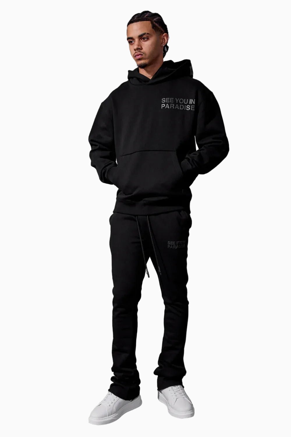 - Stacked sweatpants silhouette