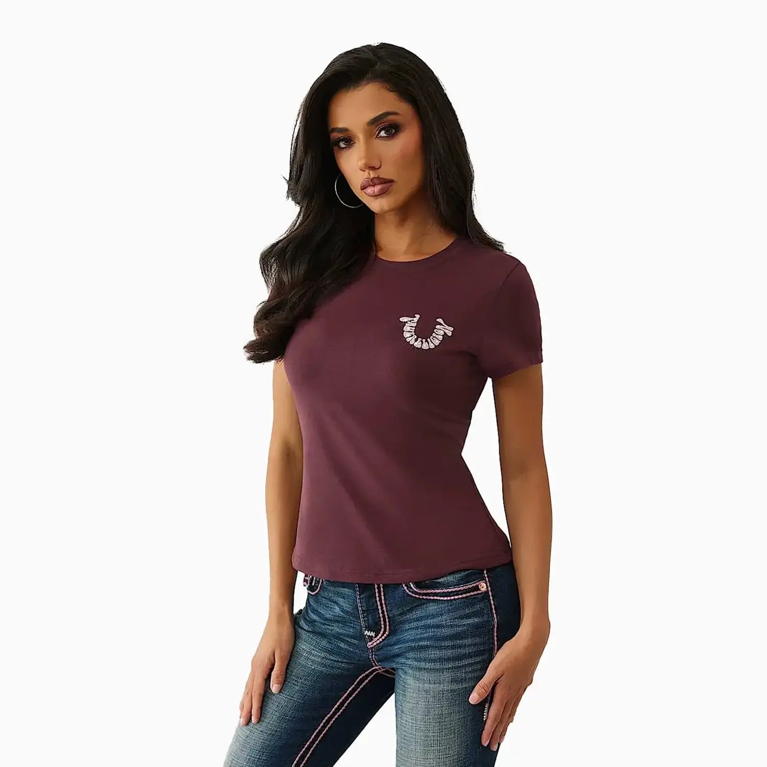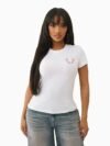 The True Religion Women’s Crystal Horseshoe T-Shirt combines iconic design with premium quality. Featuring a crystal-embellished horseshoe graphic, this tee delivers a sophisticated sparkle that enhances casual outfits. Made from soft, durable fabric, it offers a comfortable fit ideal for everyday wear. Perfect for those seeking a blend of luxury and relaxed style, this T-shirt adds a refined edge to your wardrobe essentials.